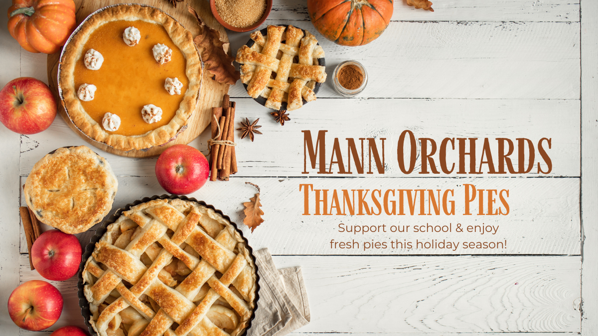 Order Deadline: All orders must be placed by Sunday, November 2nd. Pies will need to be picked up on Tuesday, November 25th at the school. Further details will be communicated as we get closer to the date.